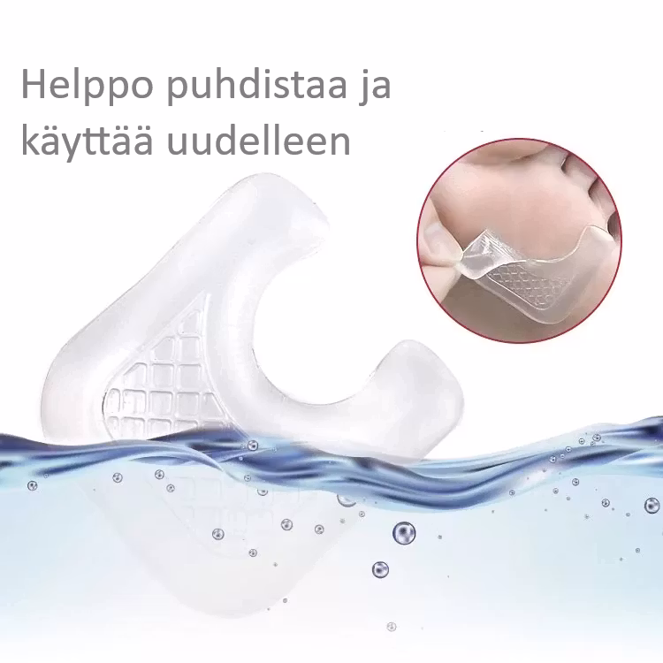 Itsekiinnittyvästä geelistä valmistetut monikäyttöiset jalkasuojat, jotka keventävät painetta ja vaimentavat siten stressiä ja iskuja alueelle, johon ne asetetaan. Jos kärsit sarveiskalvoista, kovettumista ja kenkien hankautumisesta, tämä jalkasuoja on optimaalinen. Jalkasuoja on itsekiinnittyvä ja pysyy tukevasti paikallaan.