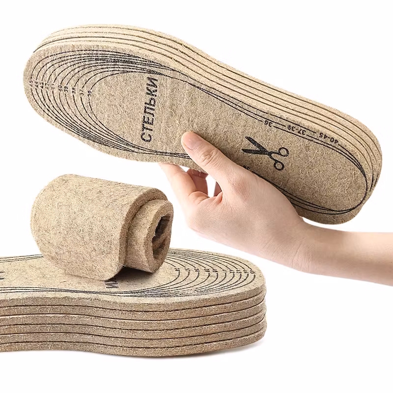 Eristävät kenkäpohjalliset villasta ja synteettisestä huovasta, jotka tarjoavat lämpöä ja mukavuutta kylminä päivinä. Saumaton muotoilu ja luonnollinen tuntu, joka ei painu kasaan käytössä.