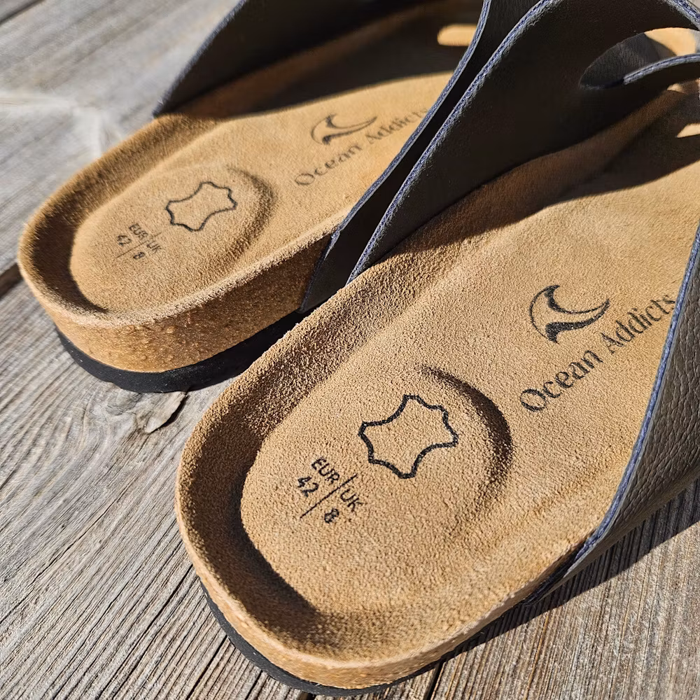 Tyylikkäät ja mukavat biosandaalit miesten koossa mustalla värillä Ocean Addictsilta korkkipohjalla niille, jotka haluavat ajattoman muotoilun ja maksimaalisen mukavuuden. Pehmustettu biojalkapohja ja jalkaan sopiva muotoilu tarjoavat optimaalisen helpotuksen ja vakauden, kun taas pehmeä EVA-pehmuste tarjoaa lisäpehmusteen ja korkean mukavuuden.